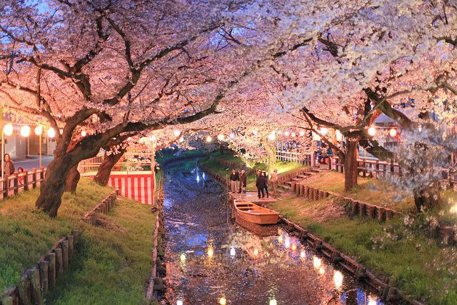 Di malam hari, pohonโ€‘pohon sakura dihiasi lampu iluminasi, menciptakan suasana romantis dan dreamy banget ๐ŸŒ™๐Ÿ’ก. Banyak pengunjung datang khusus buat menikmati yozakura ini โœจ๐ŸŒ