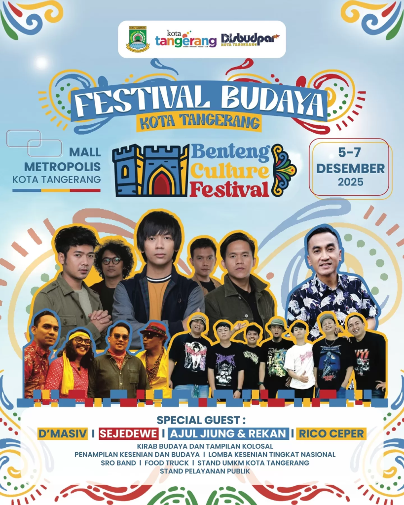 Benteng Culture Festival 2025 kembali hadir sebagai ajang perayaan budaya, seni, dan kreativitas lokal yang dikemas modern, seru, dan ramah semua usia. Selama tiga hari penuh (5โ7 Desember 2025), Tangerang berubah jadi panggung budaya raksasa yang penuh warna! ๐โจ