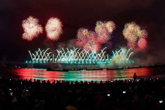 Menonton festival ini seperti mengambil bagian dalam pesta laut. Dentuman kembang api yang menggema, cahaya yang menyinari permukaan air, dan sorak penonton membuat festival ini benar-benar hidup.