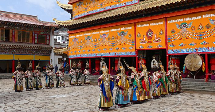 Di beberapa wilayah Tibet dan India Utara, biara besar seperti di Dharamshala dan Lhasa mengadakan upacara khusus dengan tarian sakral.